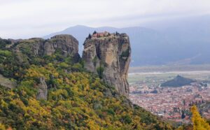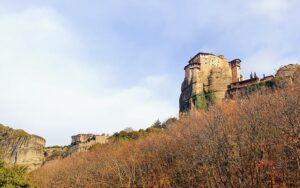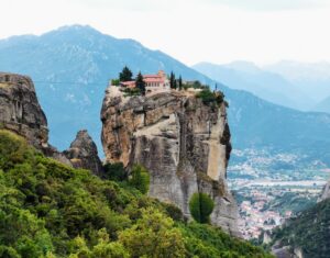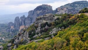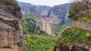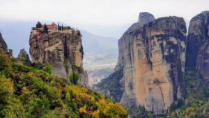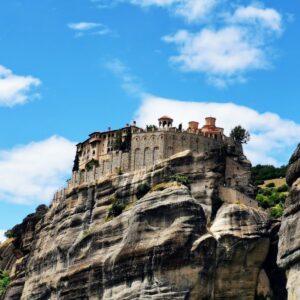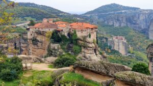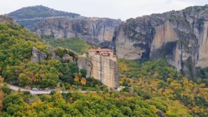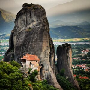 Meteora, Yunanistan’ın orta kesiminde, Teselya bölgesinde yer alıyor. İsmi “havada asılı” anlamına geliyor ve bu ismi gerçekten hak ediyor. Yüksek kayaların üzerine inşa edilmiş manastırlar hem mimari hem de manzara açısından hayranlık uyandırıcı. Kalambaka kasabasından başlayan kıvrımlı bir yol, sizi yavaş yavaş bu benzersiz yapılarla karşı karşıya getiriyor. Çok sayıda seyir noktası var. Manastırların neredeyse tamamı ziyarete açık.
